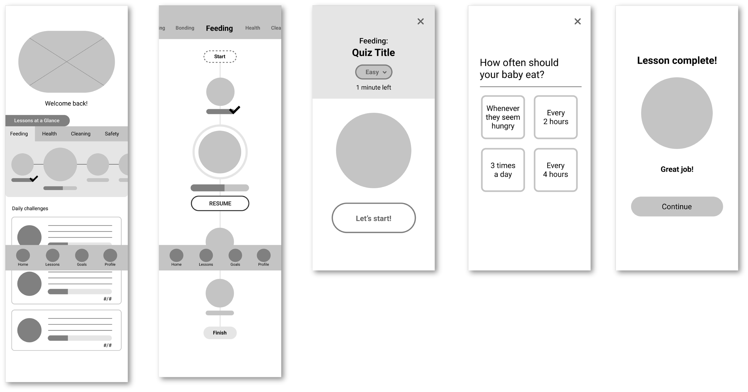 Moving from paper to digital wireframes made it easy to understand how the design could help address user pain points and improve the user experience. These designs focused on teaching adults through quizzes without study for an implicit learning approach.