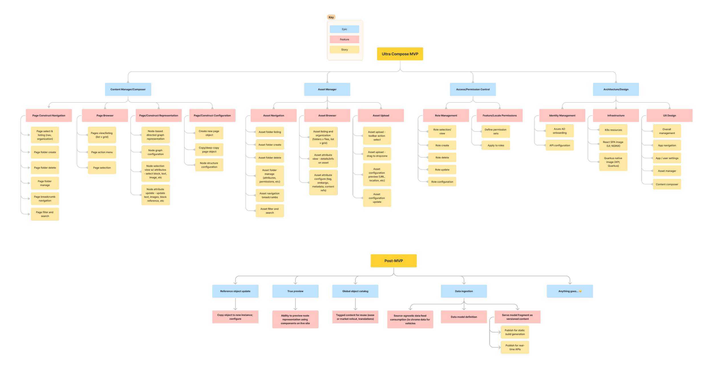 I created a visual representation of the planned architecture of Ultra Compose, showing how each tool nests within a larger feature of the CMS.