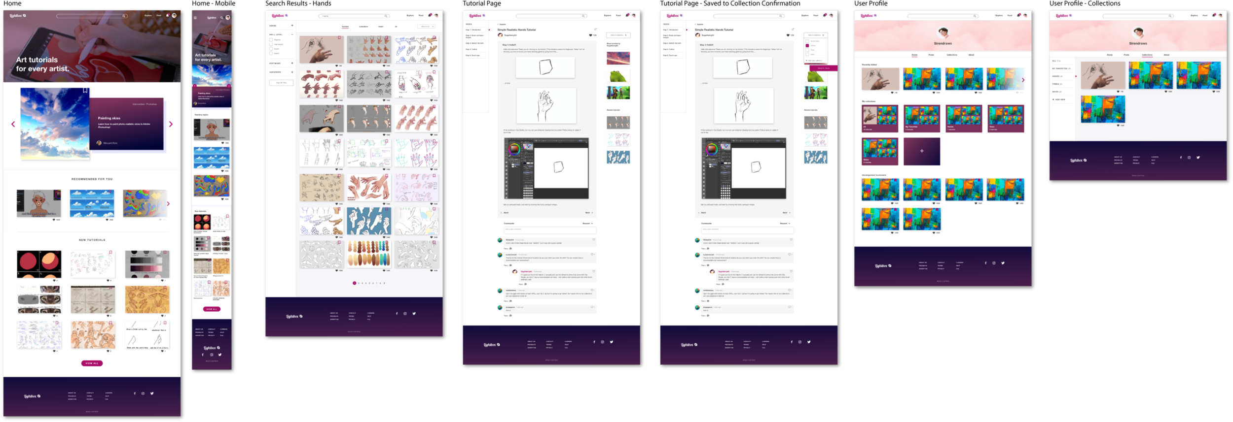 Because users search for art tutorials on a variety of different devices, I started to work on designs for additional screen sizes to make sure the site would be fully responsive.