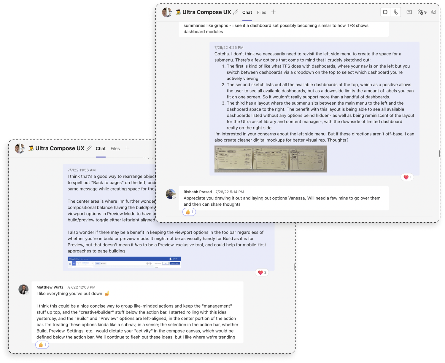 On top of biweekly meetings with the development team to discuss UX and product improvements, there were plenty of adhoc meetings that were spurred by an impromptu idea any one of the team had so we could quickly brainstorm, sketch, and talk through how to make the idea real and meaningful.