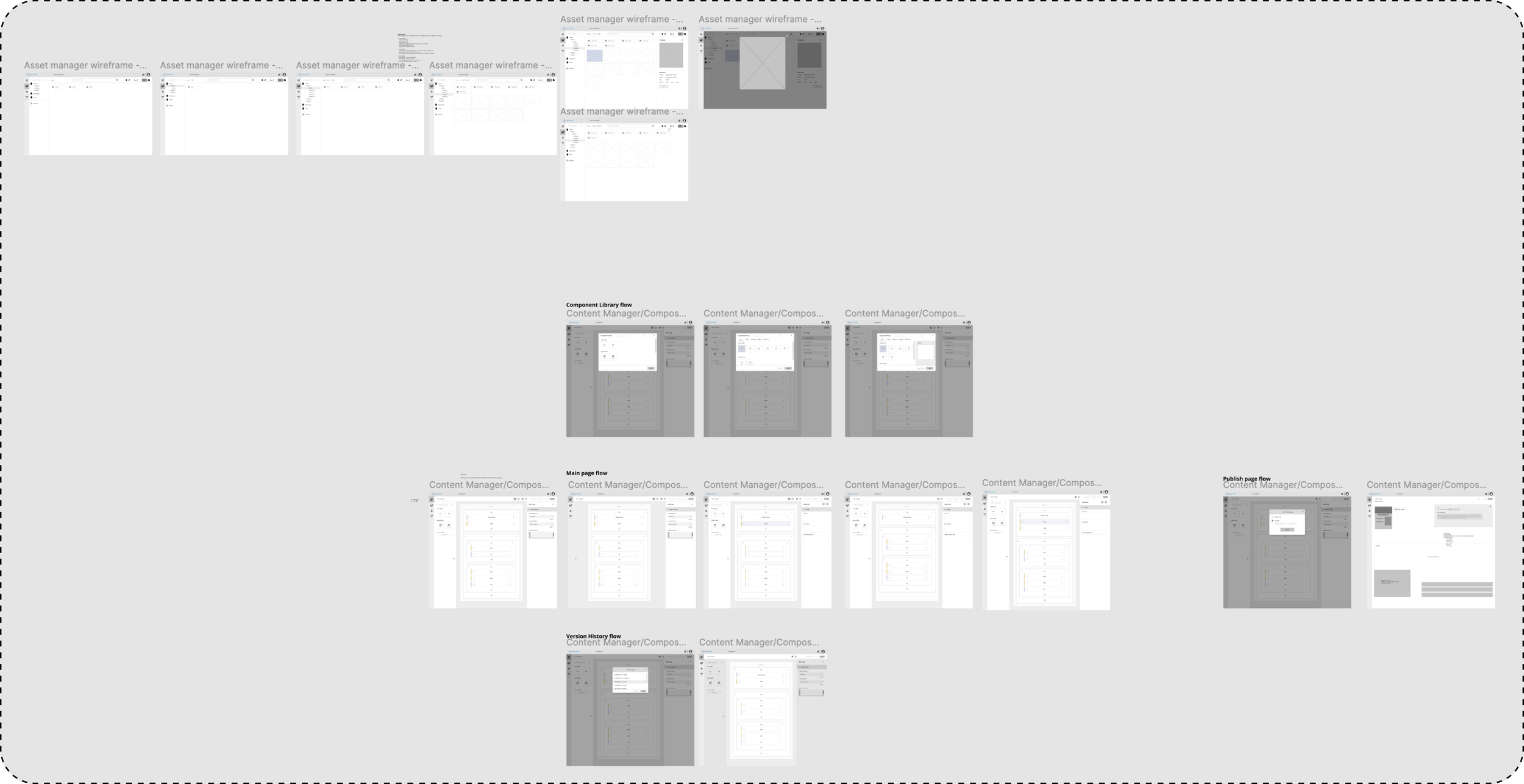 I built wireframes to block out the layout and general screen progression of the primary epics- Asset Library and Composer- to have visual representation of each feature.